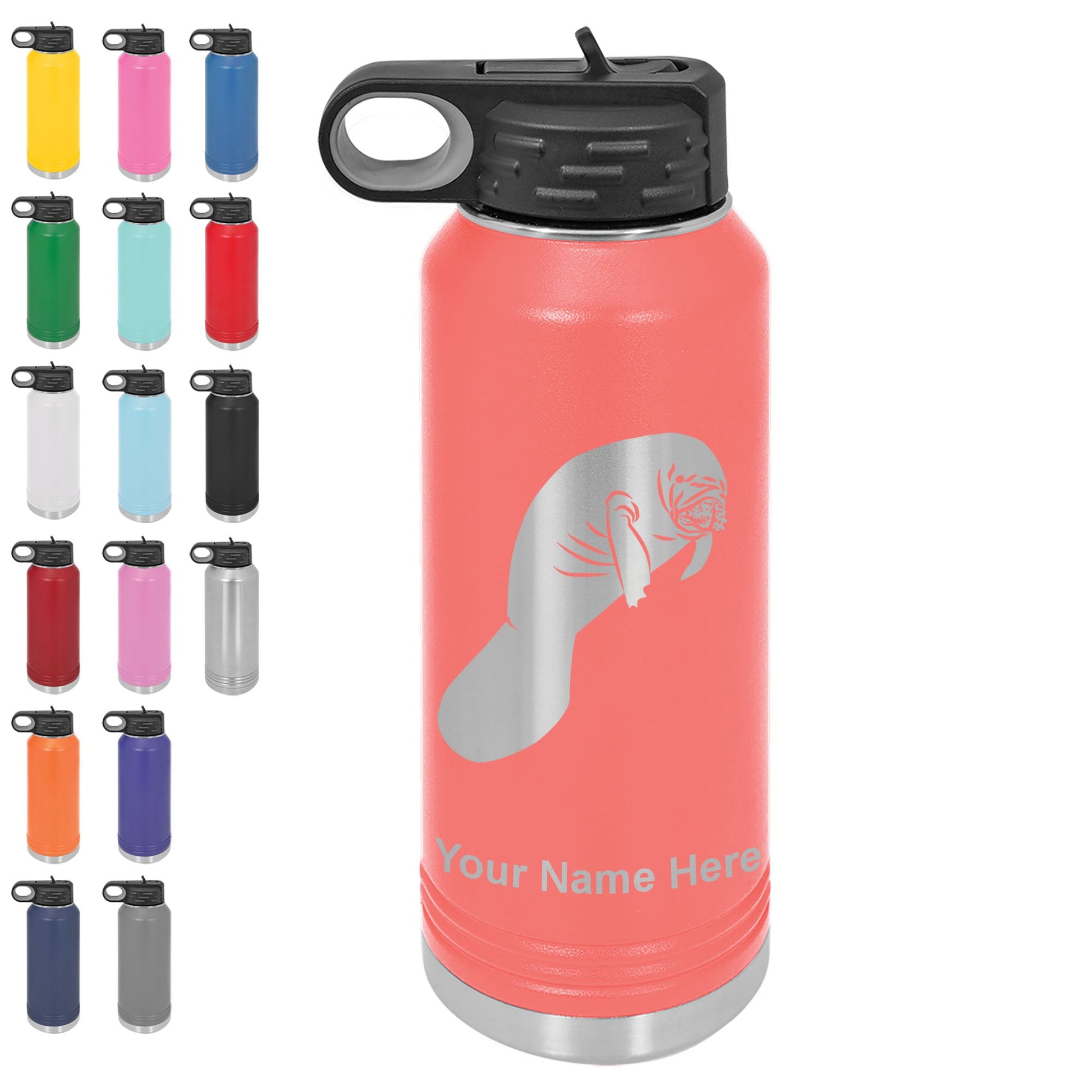 40oz Double Wall Flip Top Water Bottle with Straw, Manatee, Personalized Engraving Included