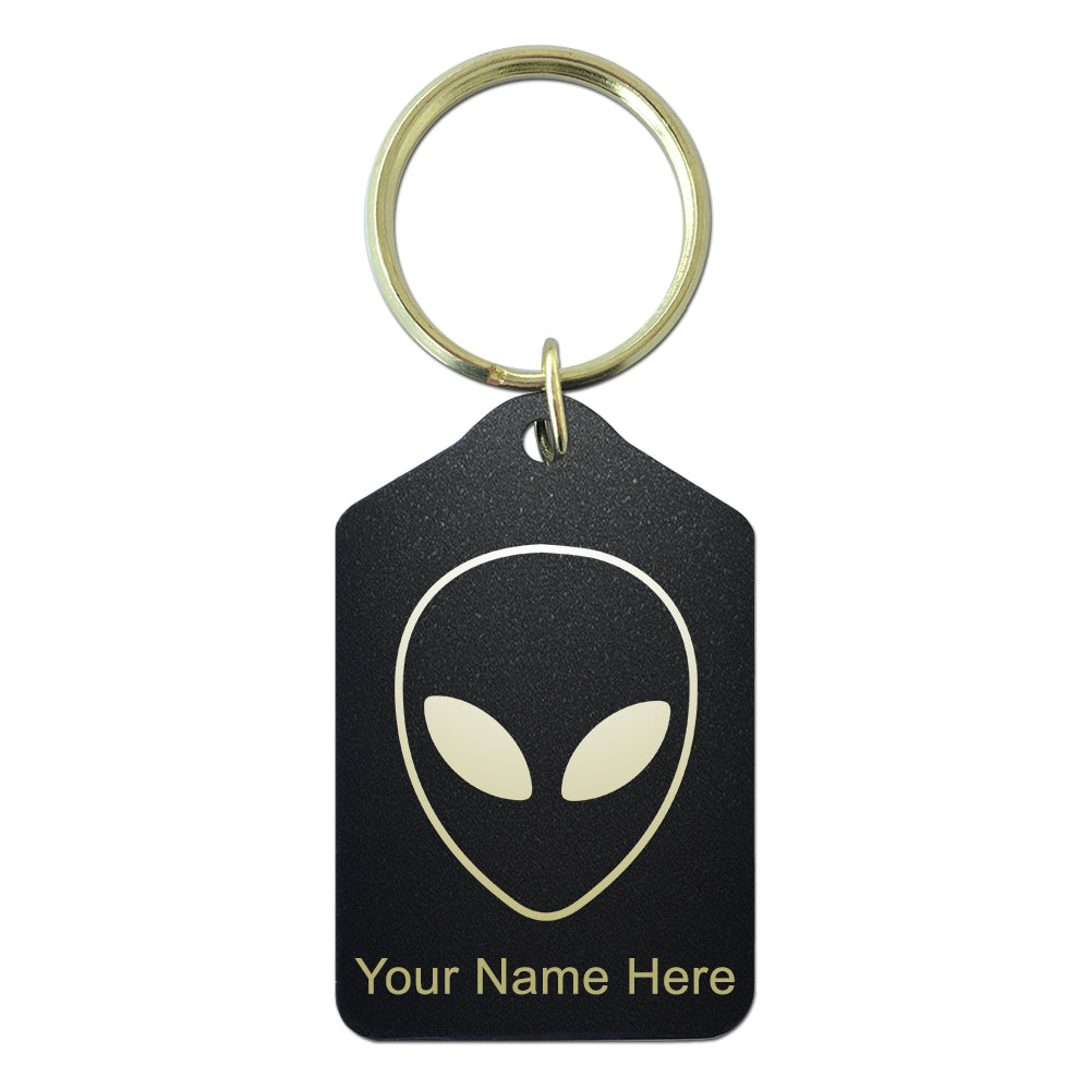 Black Metal Keychain, Alien Head, Personalized Engraving Included