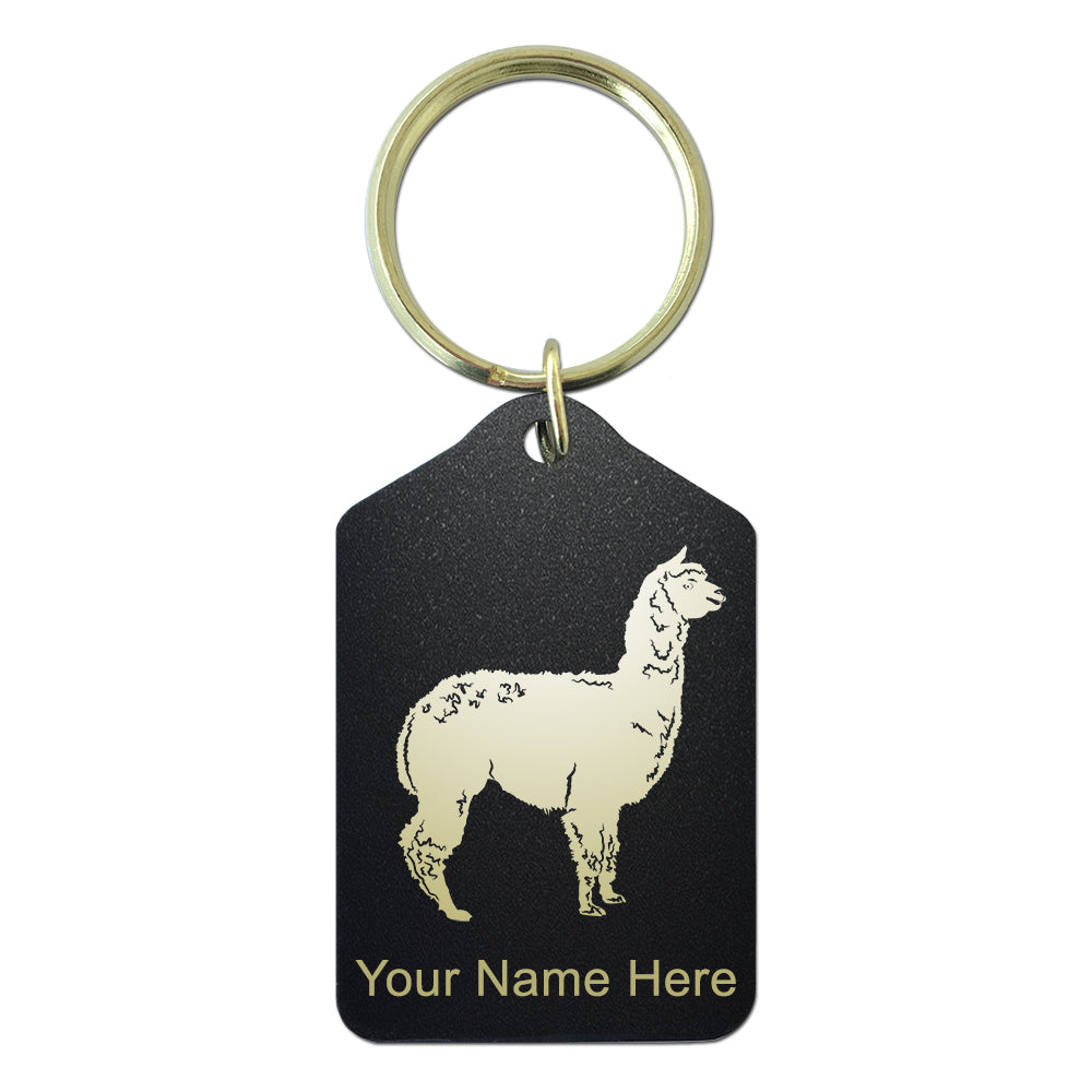 Black Metal Keychain, Alpaca, Personalized Engraving Included