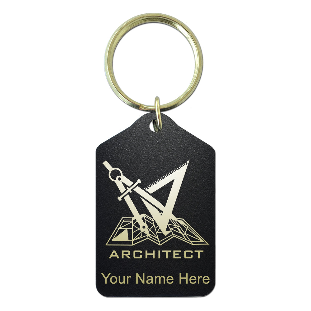 Black Metal Keychain, Architect Symbol, Personalized Engraving Included