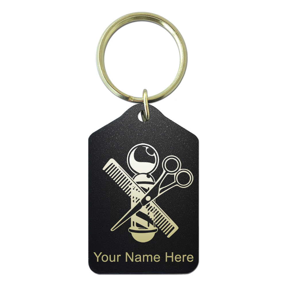 Black Metal Keychain, Barber Shop Pole, Personalized Engraving Included