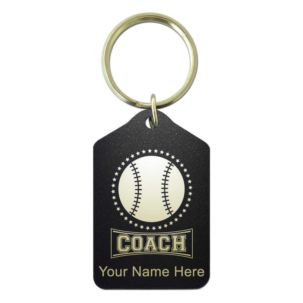 Black Metal Keychain, Baseball Coach, Personalized Engraving Included