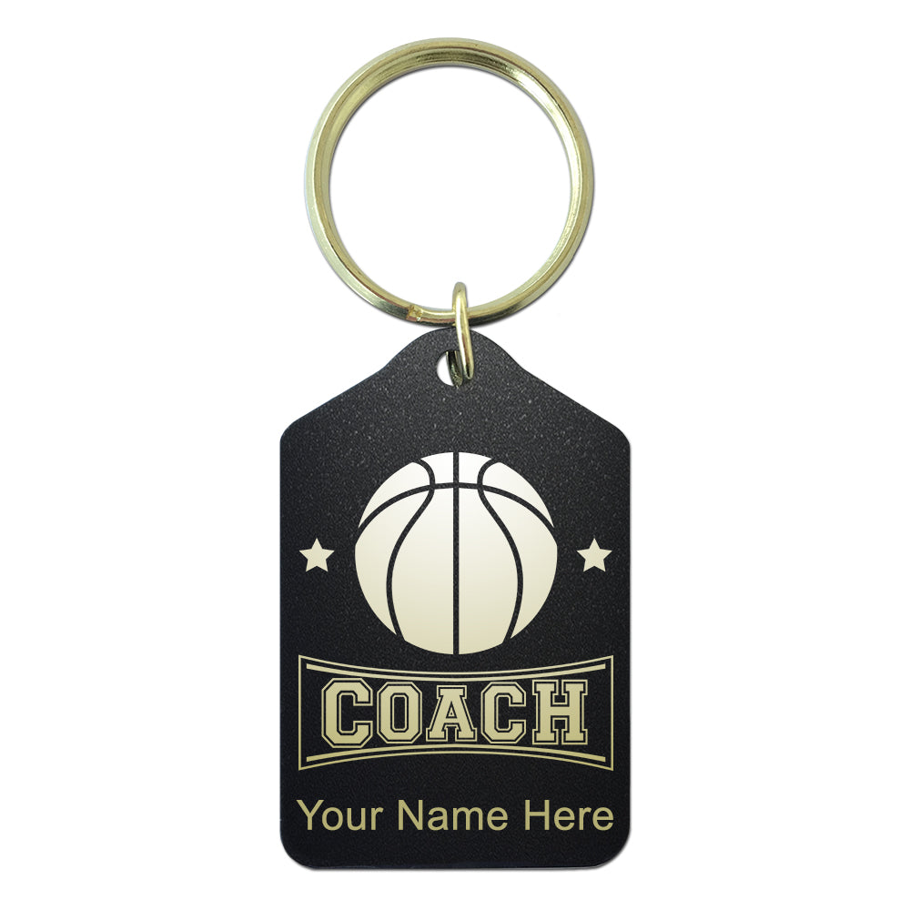 Black Metal Keychain, Basketball Coach, Personalized Engraving Included