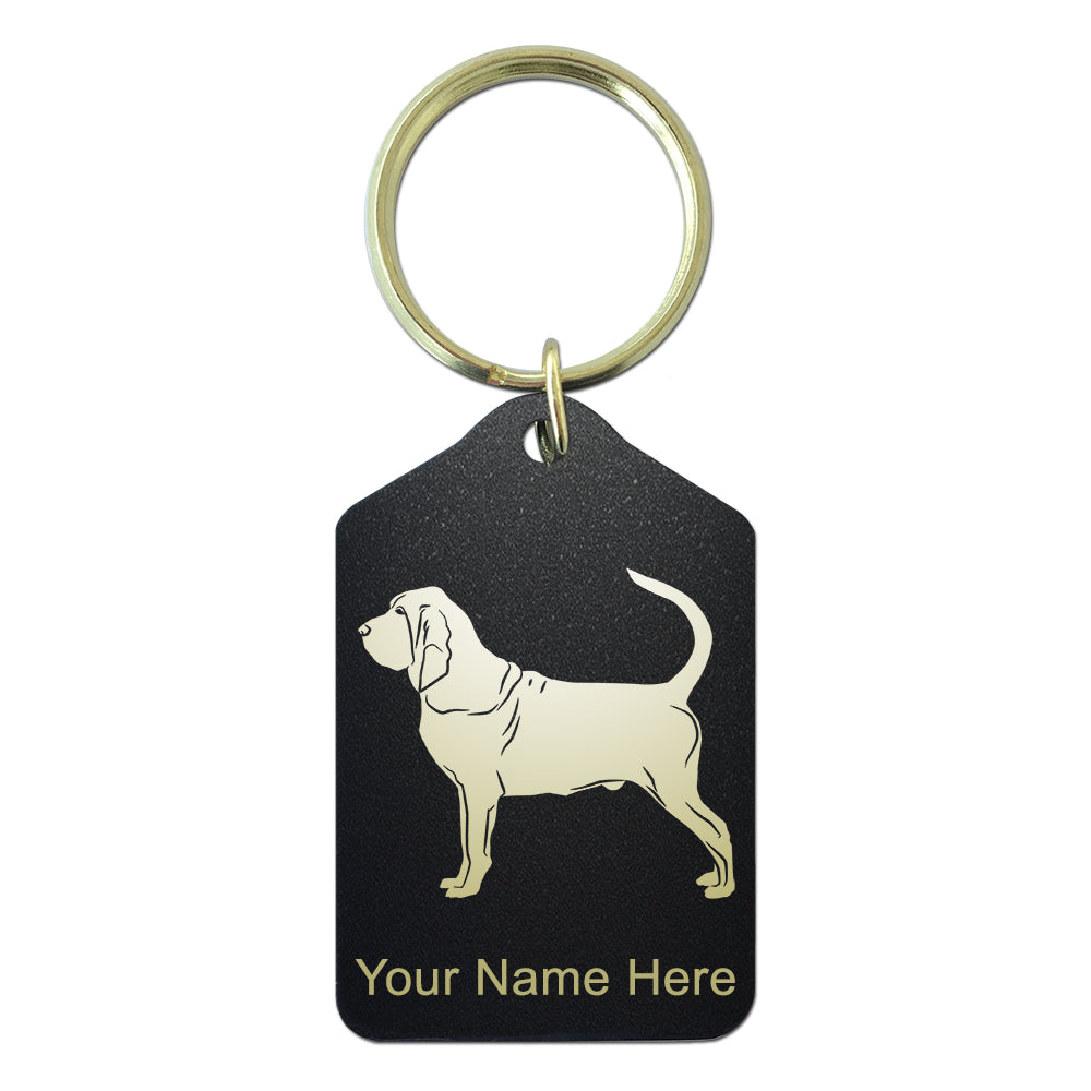 Black Metal Keychain, Bloodhound Dog, Personalized Engraving Included