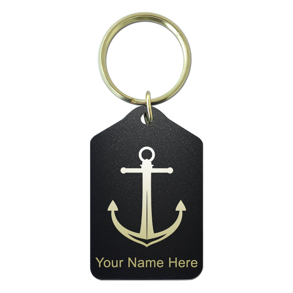 Black Metal Keychain, Boat Anchor, Personalized Engraving Included