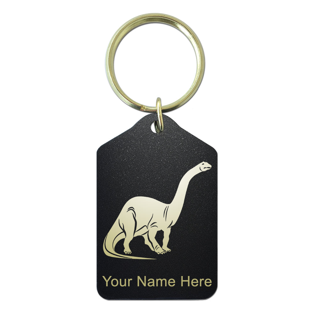 Black Metal Keychain, Brontosaurus Dinosaur, Personalized Engraving Included