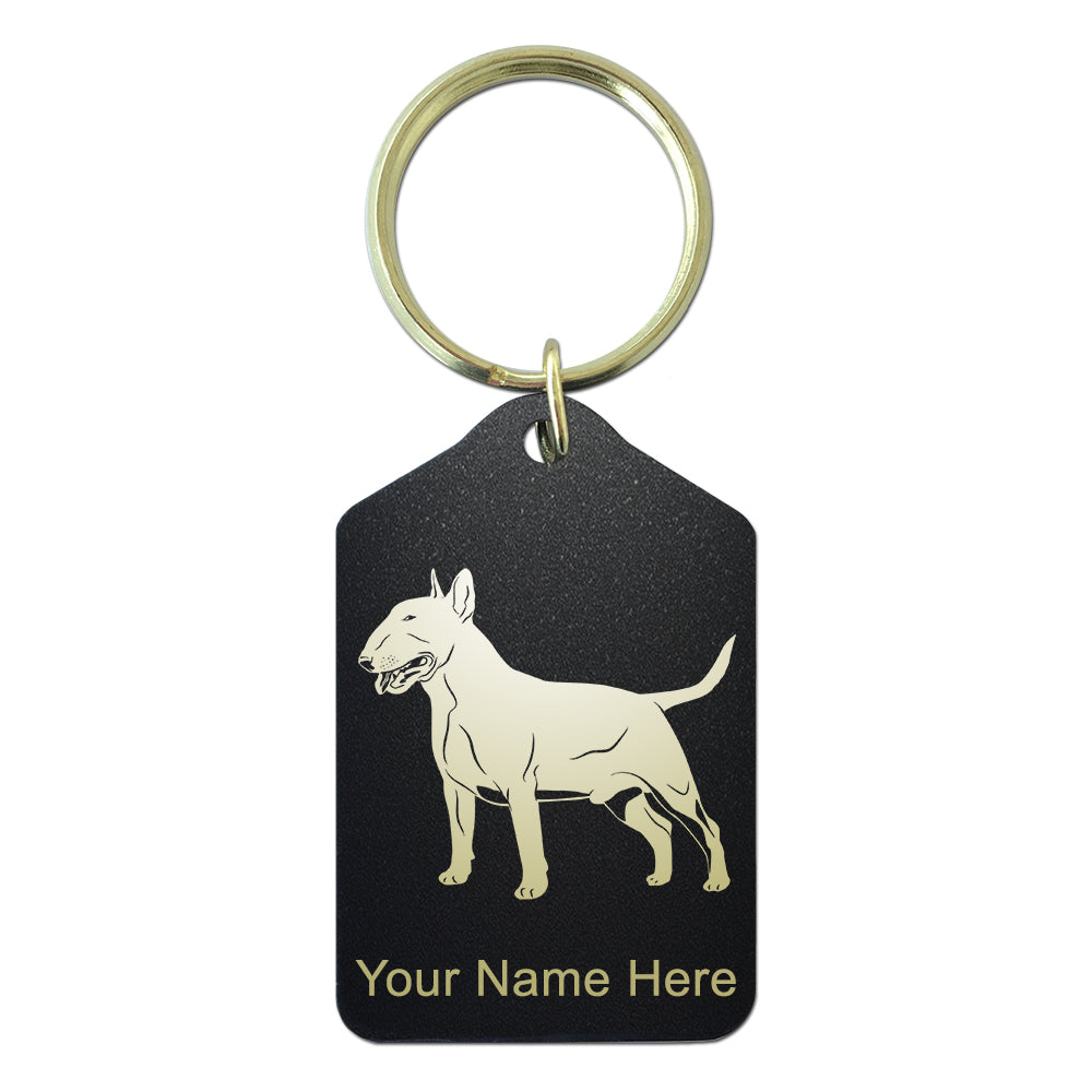 Black Metal Keychain, Bull Terrier Dog, Personalized Engraving Included