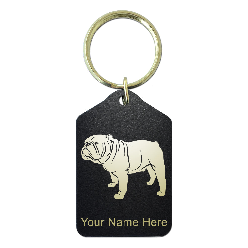 Black Metal Keychain, Bulldog Dog, Personalized Engraving Included