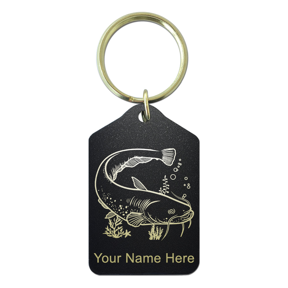 Black Metal Keychain, Catfish, Personalized Engraving Included