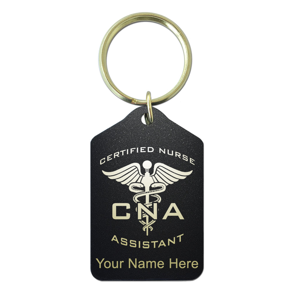 Black Metal Keychain, CNA Certified Nurse Assistant, Personalized Engraving Included