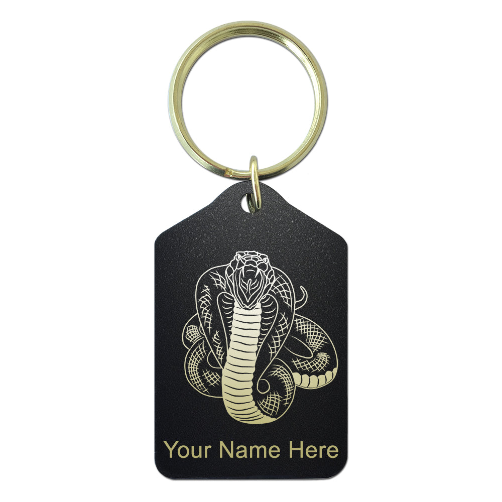 Black Metal Keychain, Cobra Snake, Personalized Engraving Included