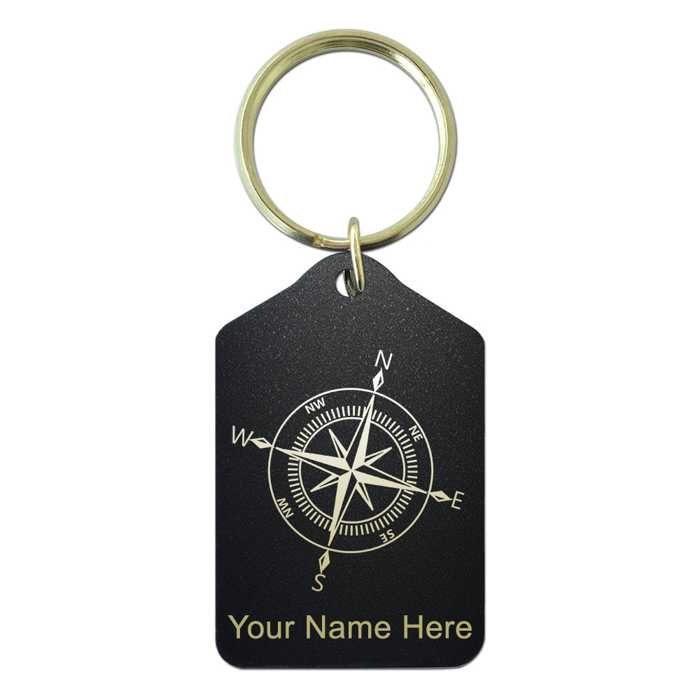 Black Metal Keychain, Compass Rose, Personalized Engraving Included