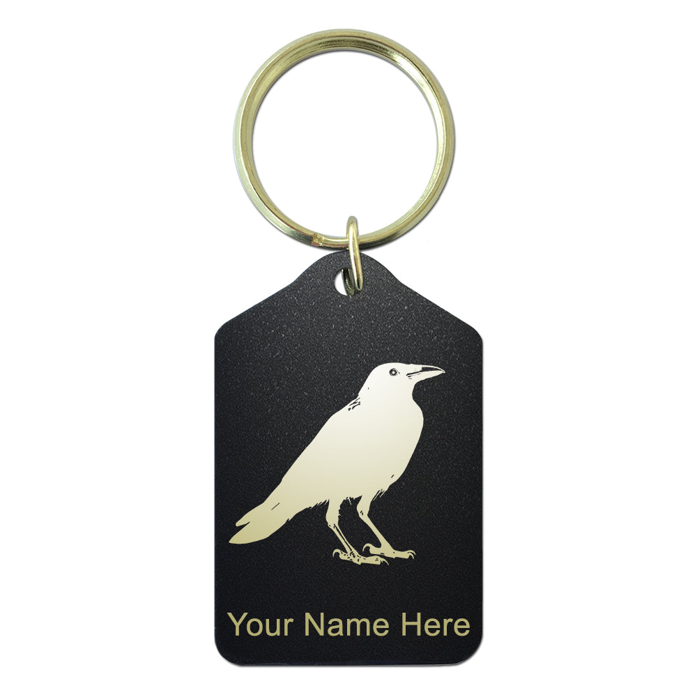 Black Metal Keychain, Crow, Personalized Engraving Included