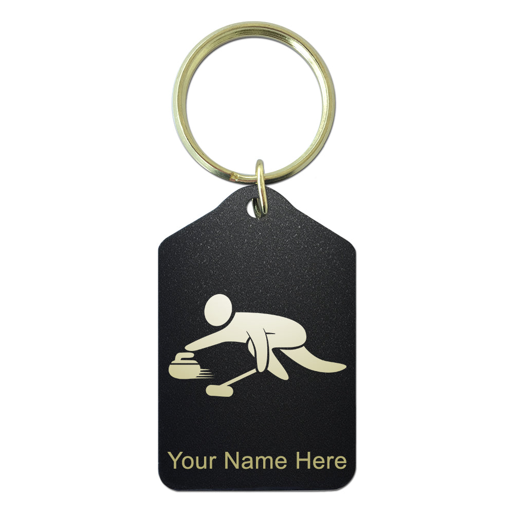 Black Metal Keychain, Curling Figure, Personalized Engraving Included