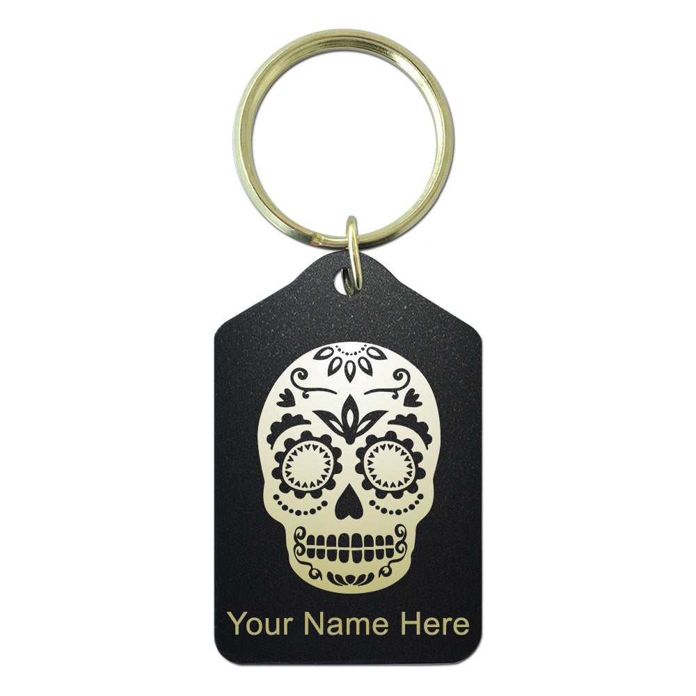 Black Metal Keychain, Day of the Dead, Personalized Engraving Included