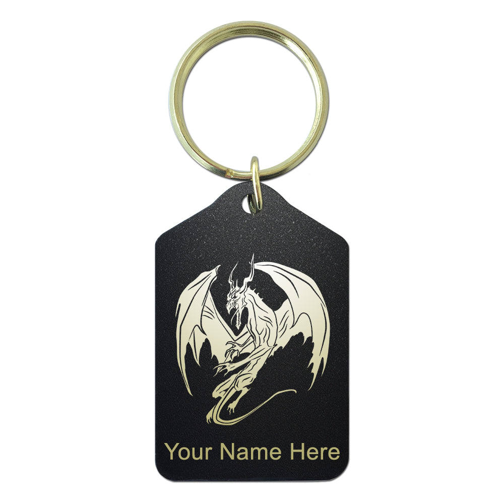 Black Metal Keychain, Dragon, Personalized Engraving Included