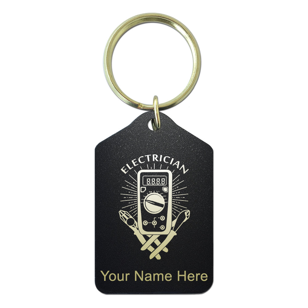 Black Metal Keychain, Electrician, Personalized Engraving Included