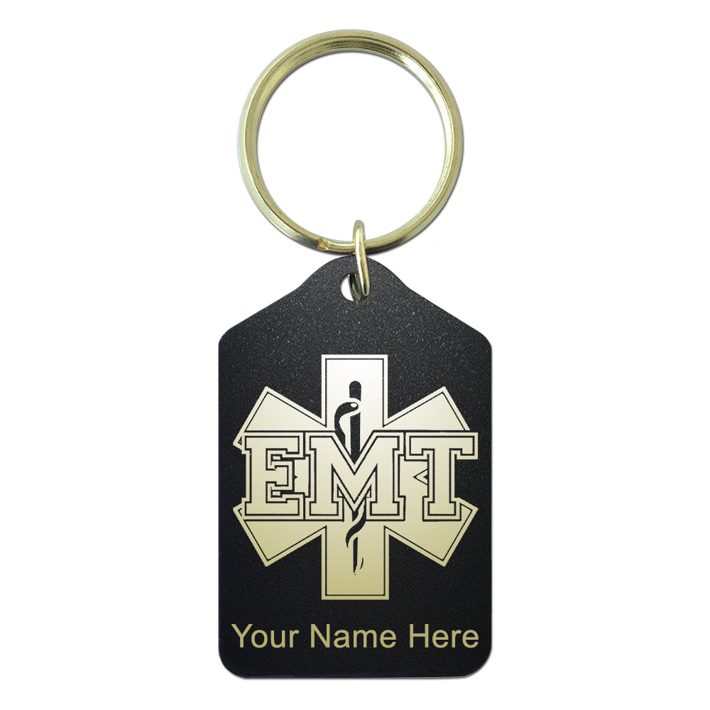 Black Metal Keychain, EMT Emergency Medical Technician, Personalized Engraving Included