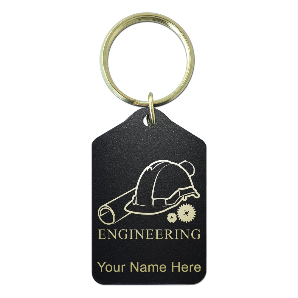 Black Metal Keychain, Engineering, Personalized Engraving Included