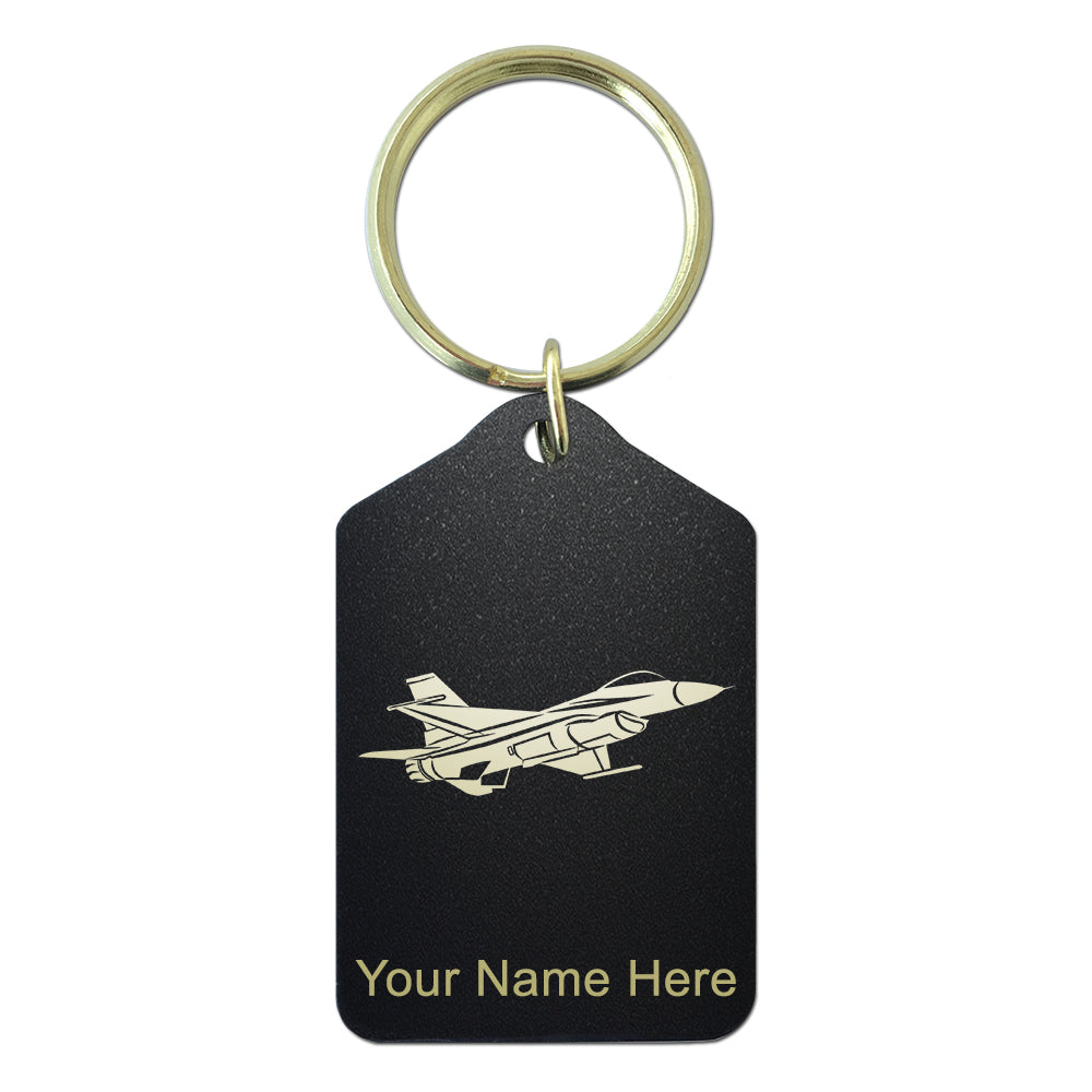 Black Metal Keychain, Fighter Jet 1, Personalized Engraving Included