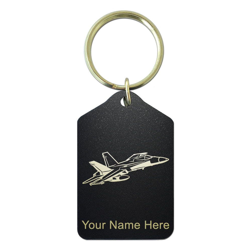 Black Metal Keychain, Fighter Jet 2, Personalized Engraving Included