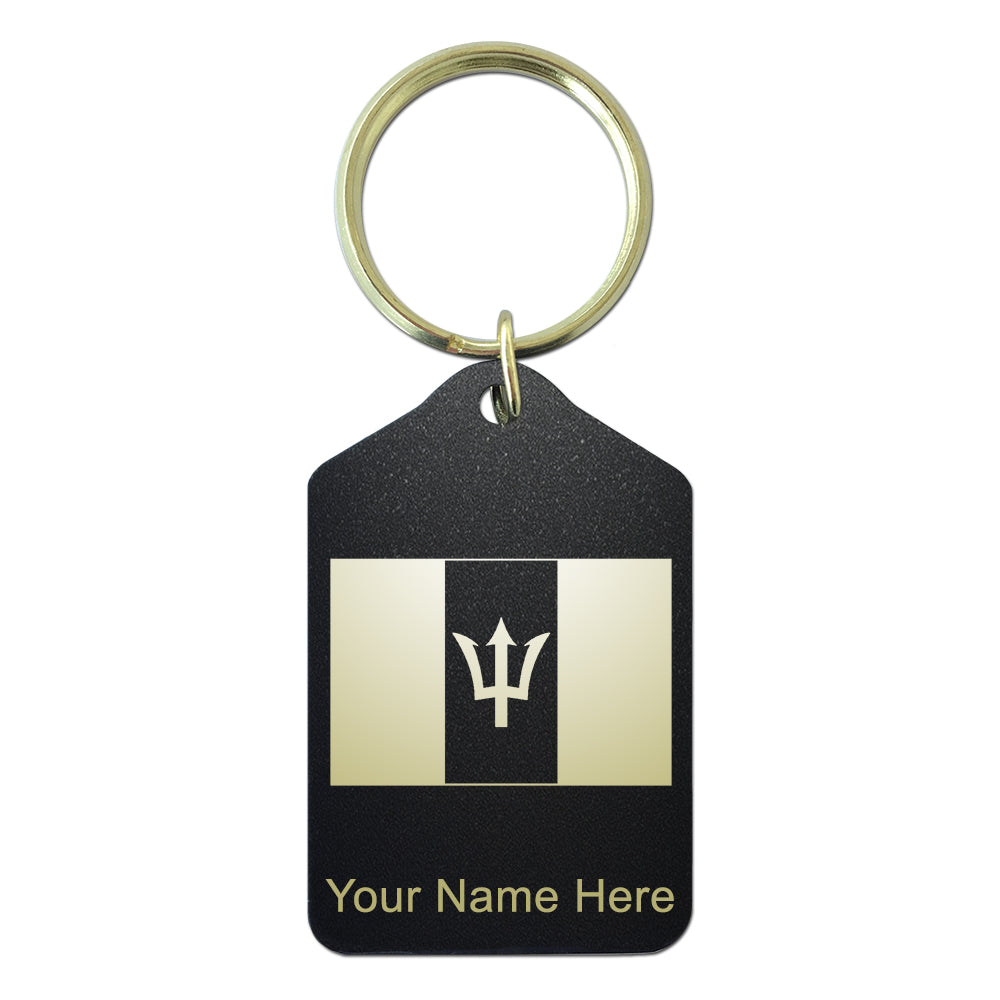 Black Metal Keychain, Flag of Barbados, Personalized Engraving Included