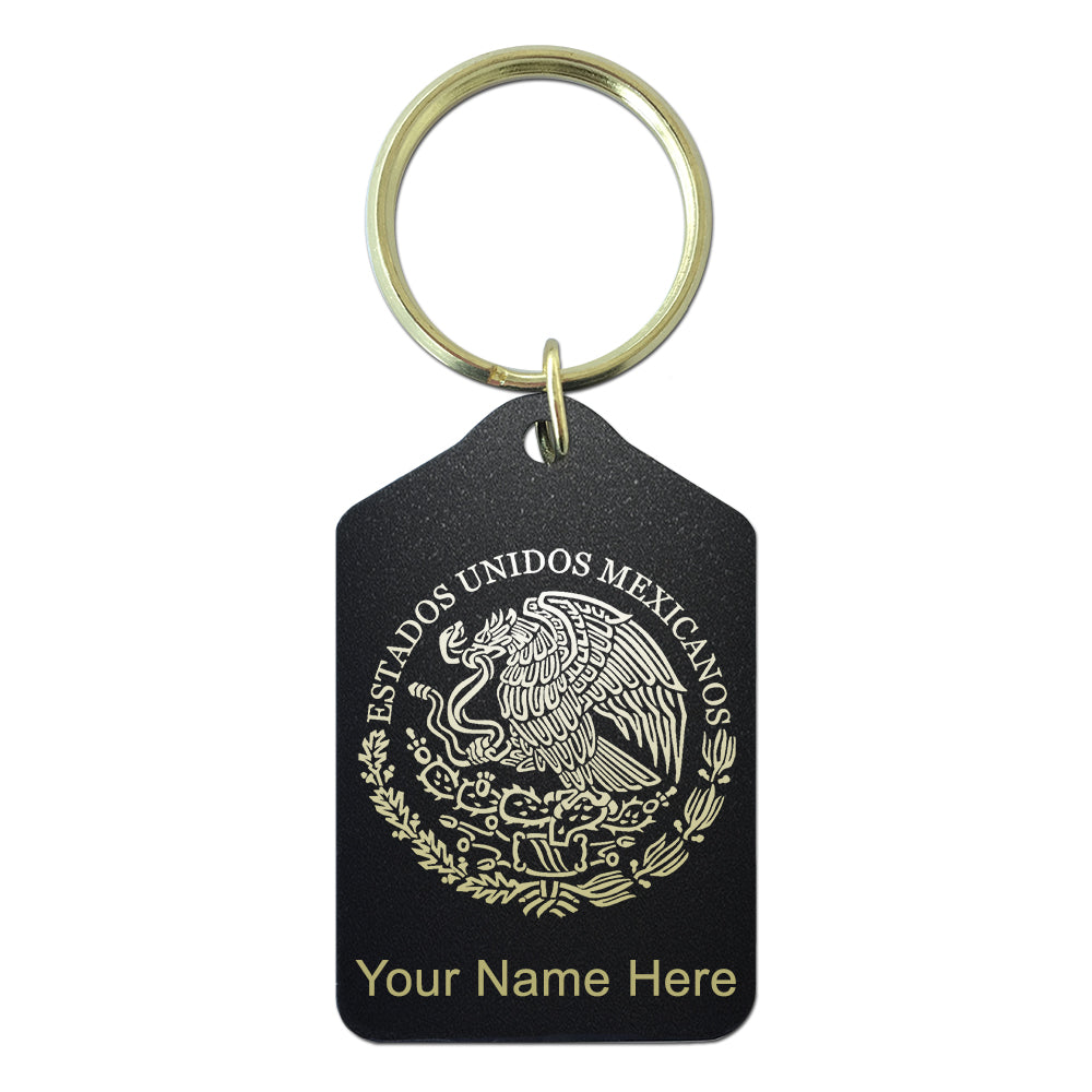 Black Metal Keychain, Flag of Mexico, Personalized Engraving Included