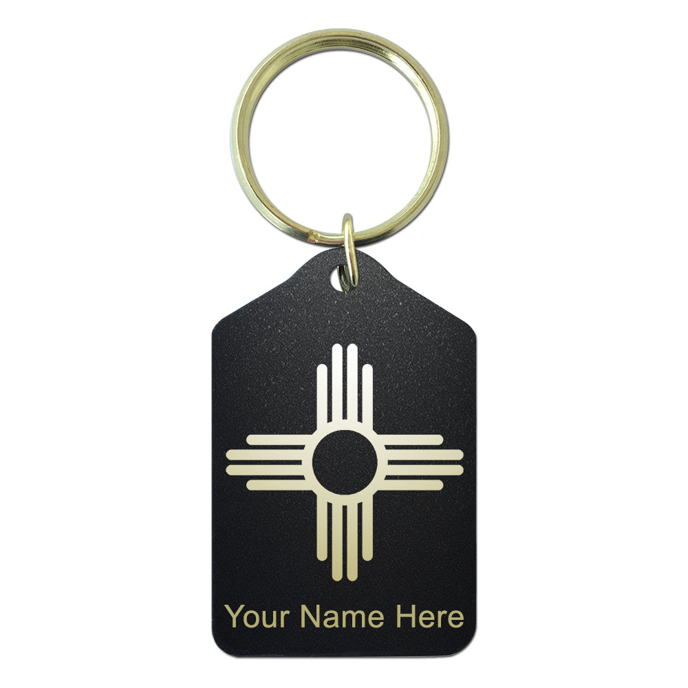 Black Metal Keychain, Flag of New Mexico, Personalized Engraving Included