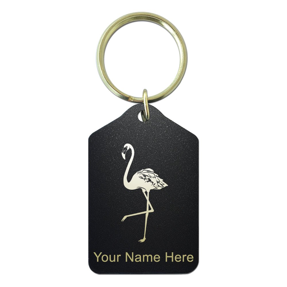 Black Metal Keychain, Flamingo, Personalized Engraving Included