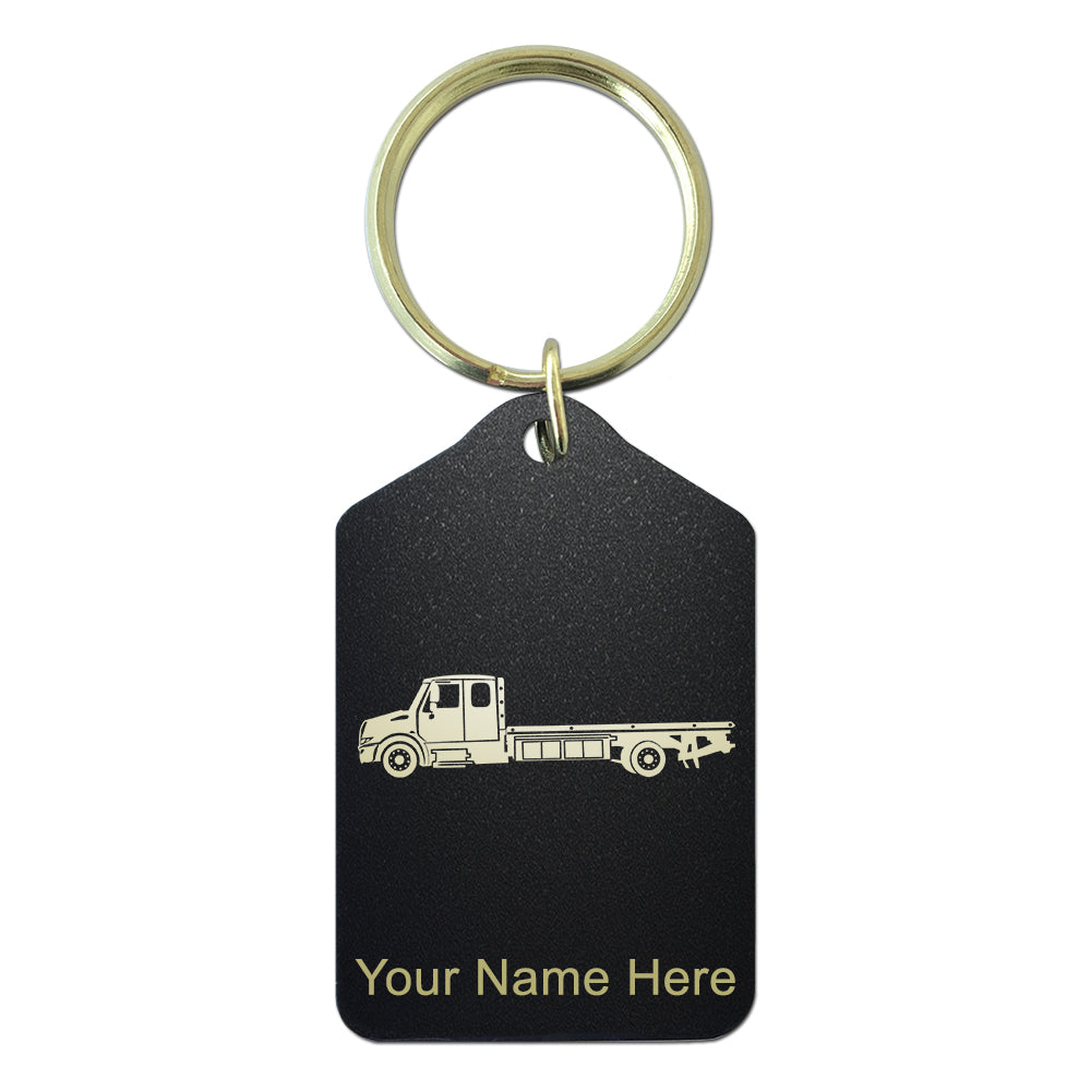 Black Metal Keychain, Flat Bed Tow Truck, Personalized Engraving Included