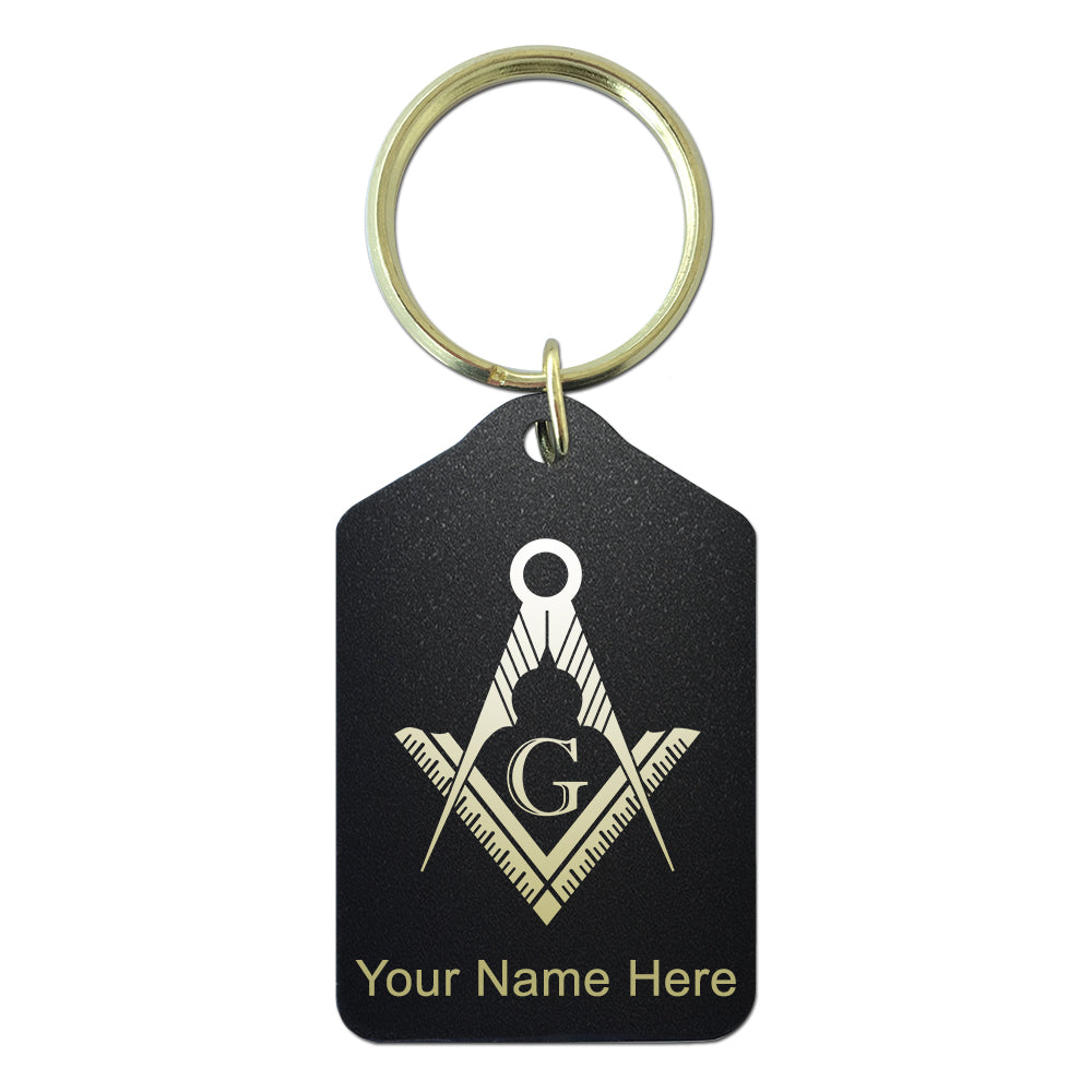 Black Metal Keychain, Freemason Symbol, Personalized Engraving Included