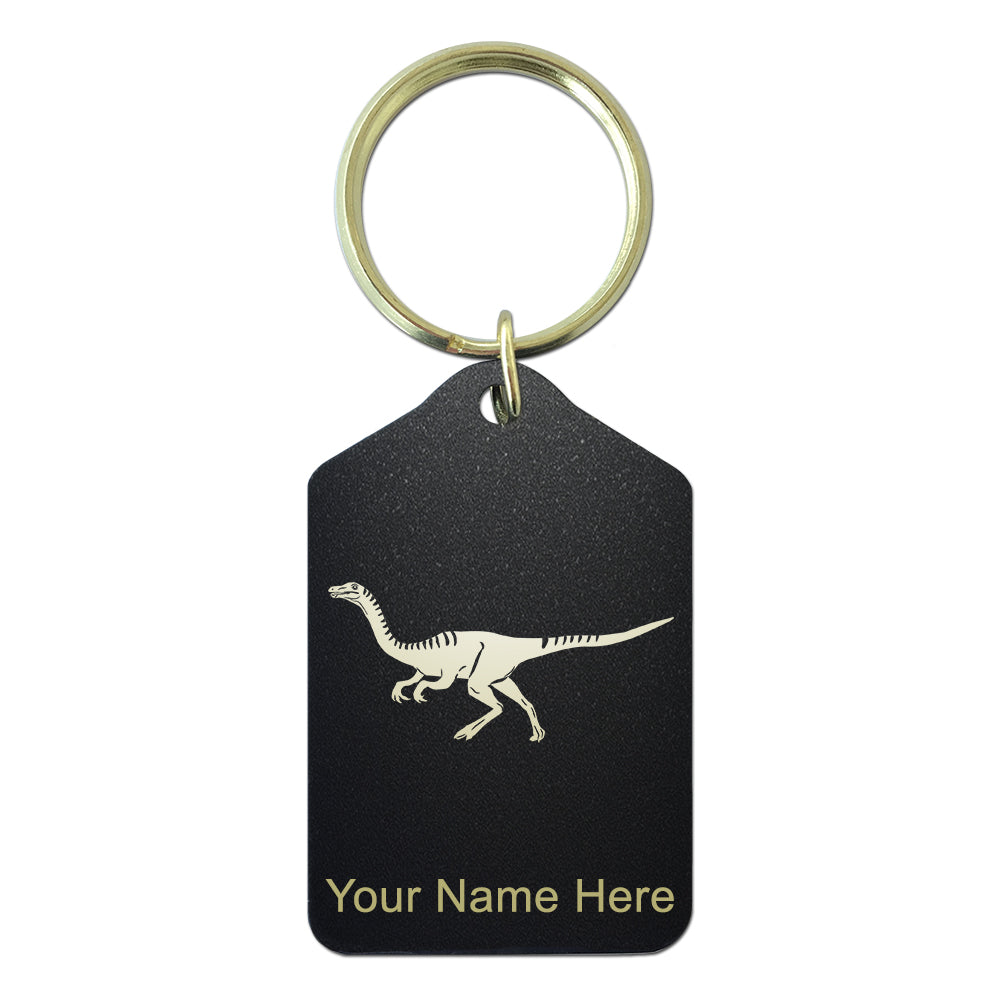 Black Metal Keychain, Gallimimus Dinosaur, Personalized Engraving Included