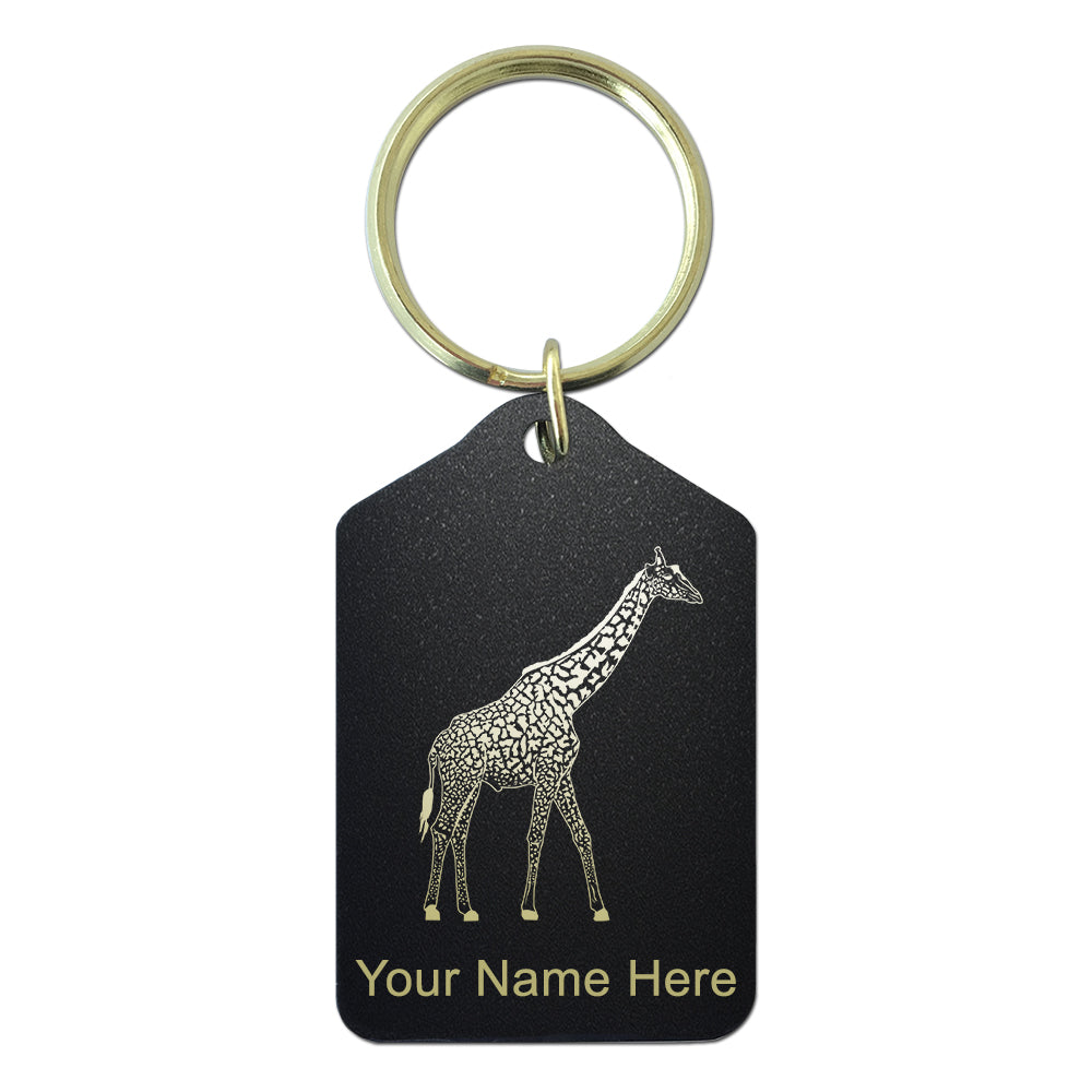 Black Metal Keychain, Giraffe, Personalized Engraving Included
