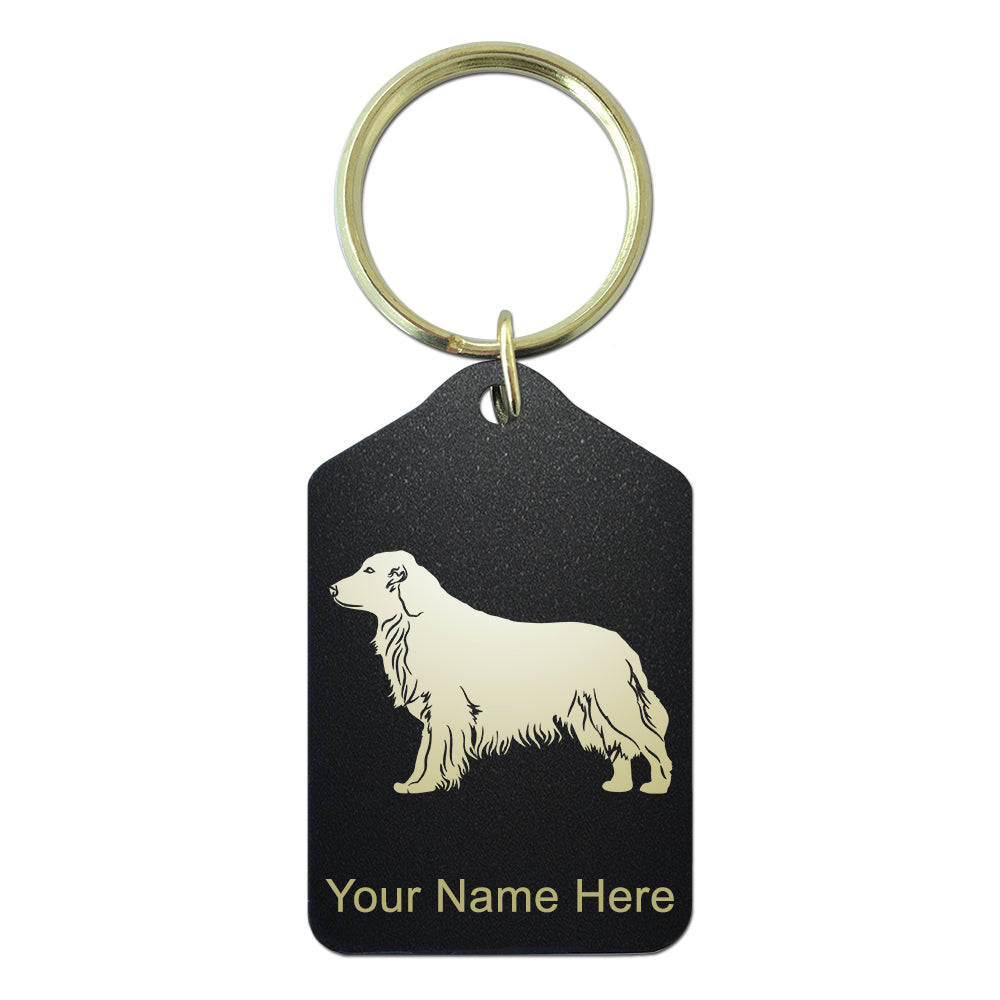 Black Metal Keychain, Golden Retriever Dog, Personalized Engraving Included