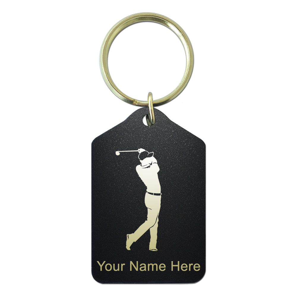 Black Metal Keychain, Golfer Golfing, Personalized Engraving Included