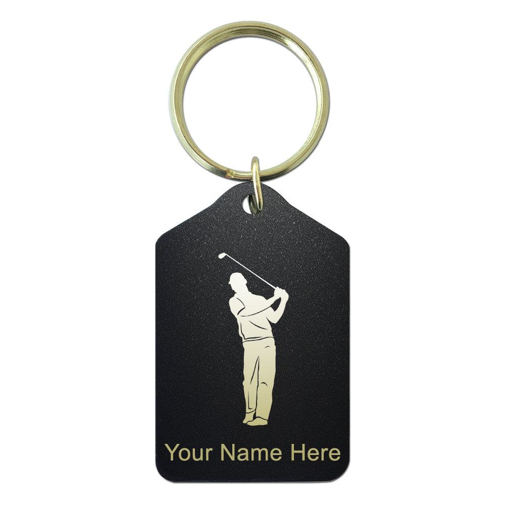 Black Metal Keychain, Golfer, Personalized Engraving Included