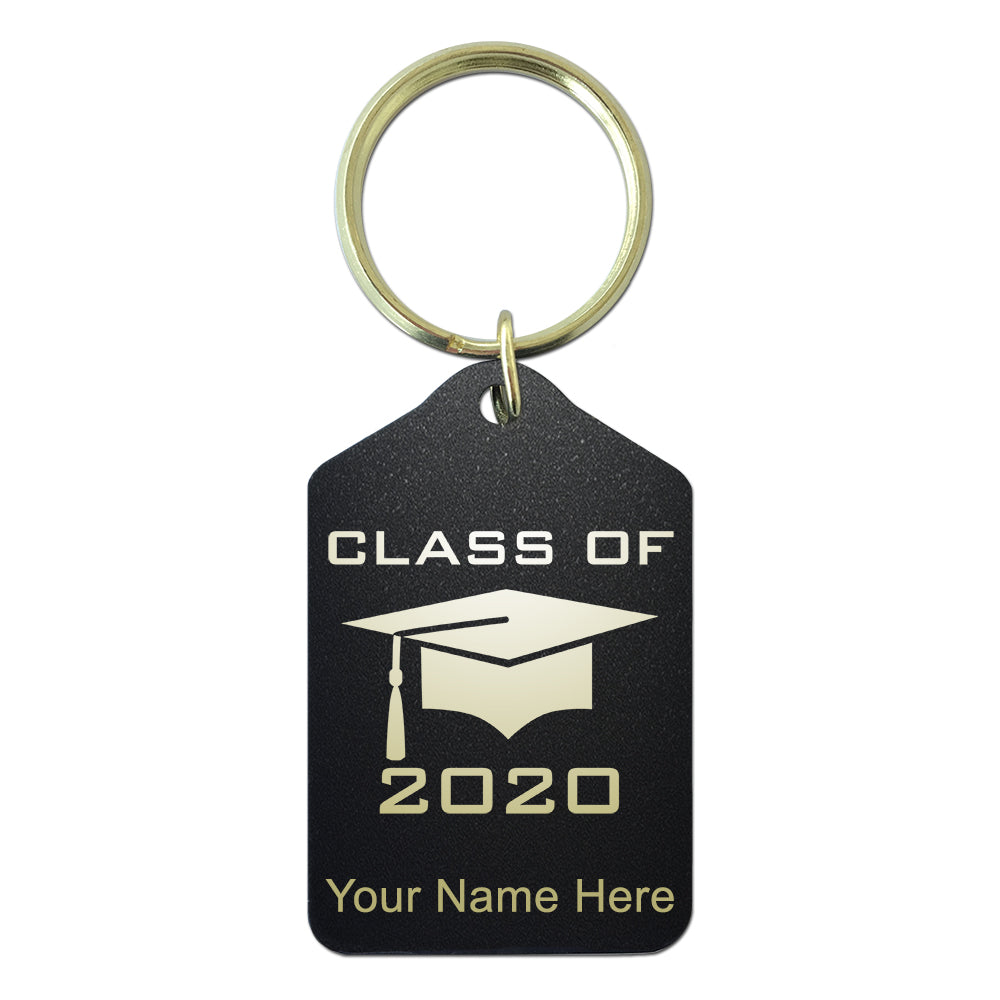 Black Metal Keychain, Grad Cap Class of 2020, 2021, 2022, 2023 2024, 2025, Personalized Engraving Included