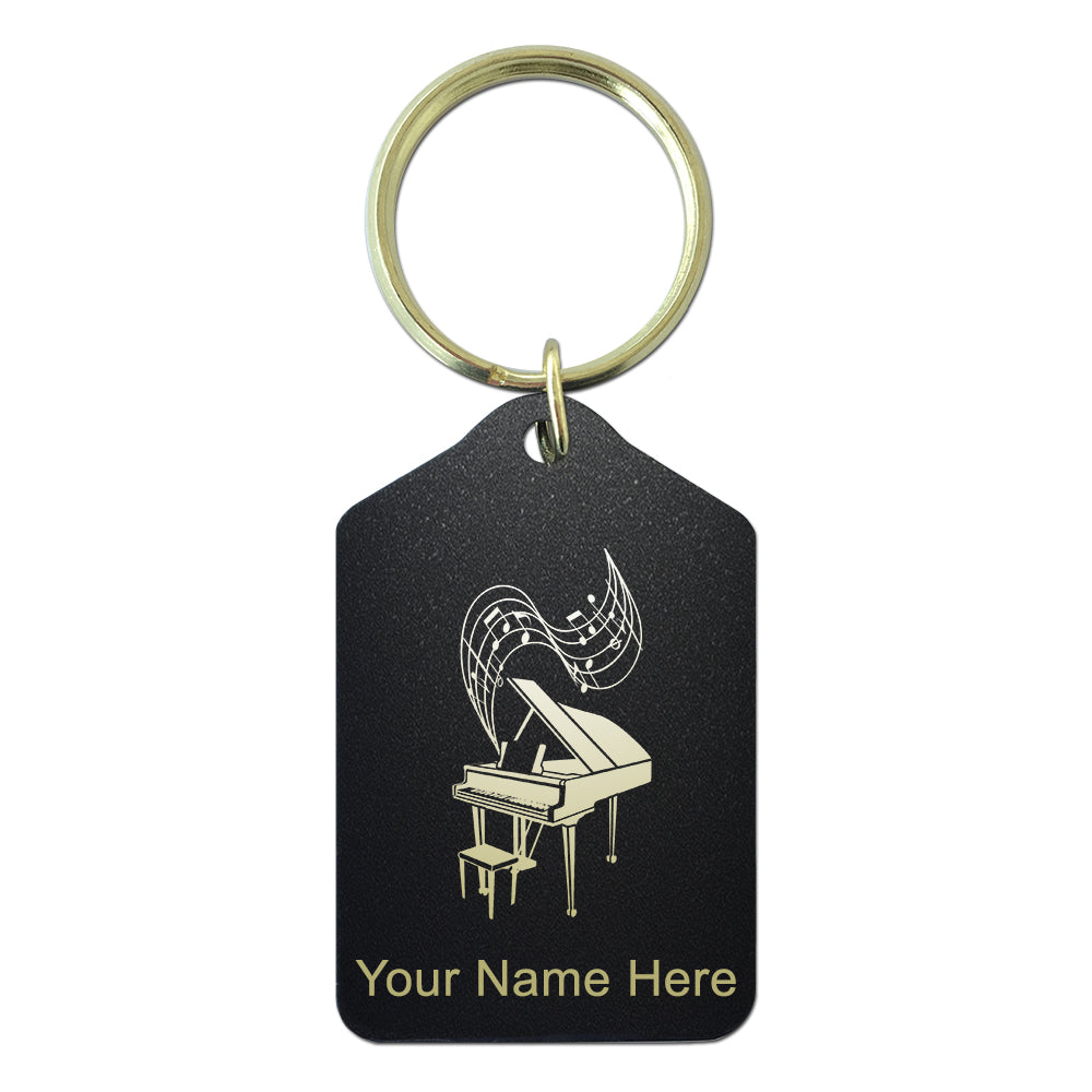 Black Metal Keychain, Grand Piano, Personalized Engraving Included