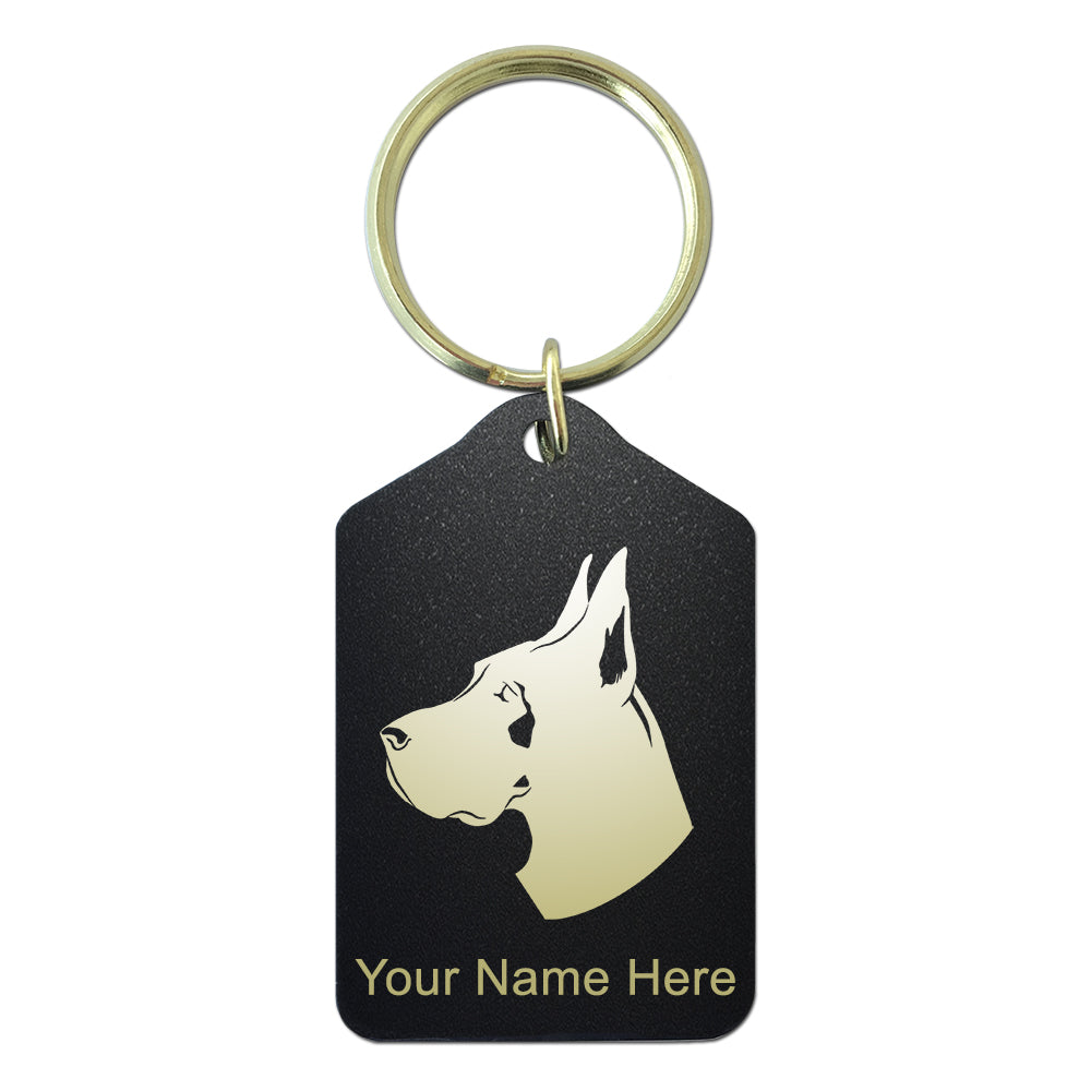 Black Metal Keychain, Great Dane Dog, Personalized Engraving Included