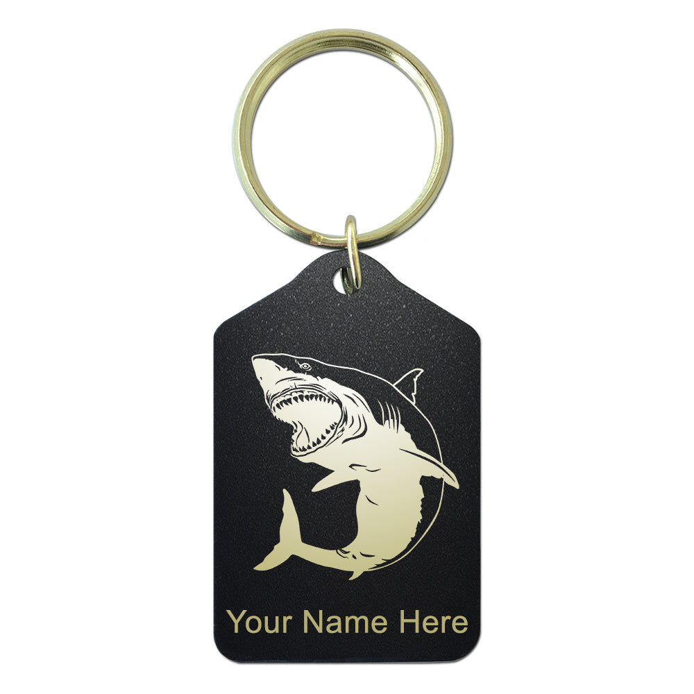 Black Metal Keychain, Great White Shark, Personalized Engraving Included
