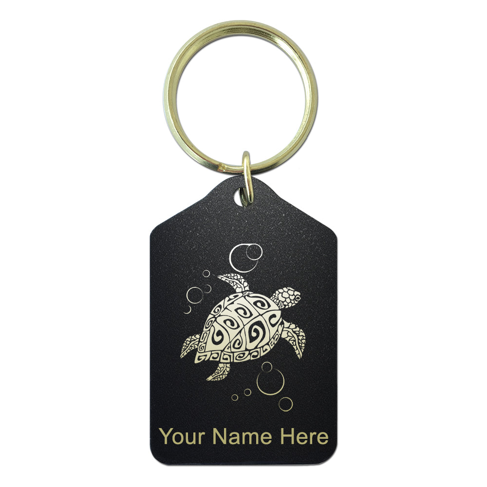 Black Metal Keychain, Hawaiian Sea Turtle, Personalized Engraving Included