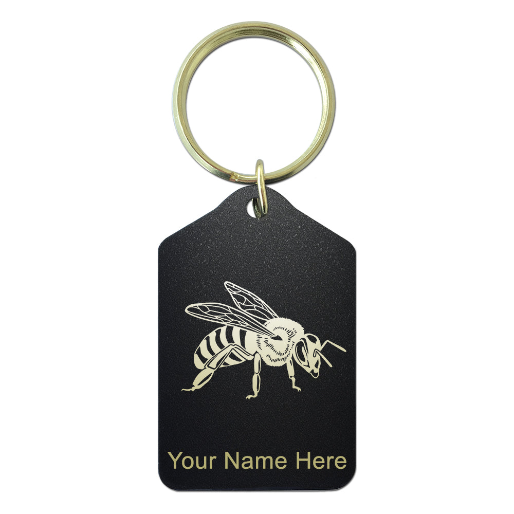 Black Metal Keychain, Honey Bee, Personalized Engraving Included
