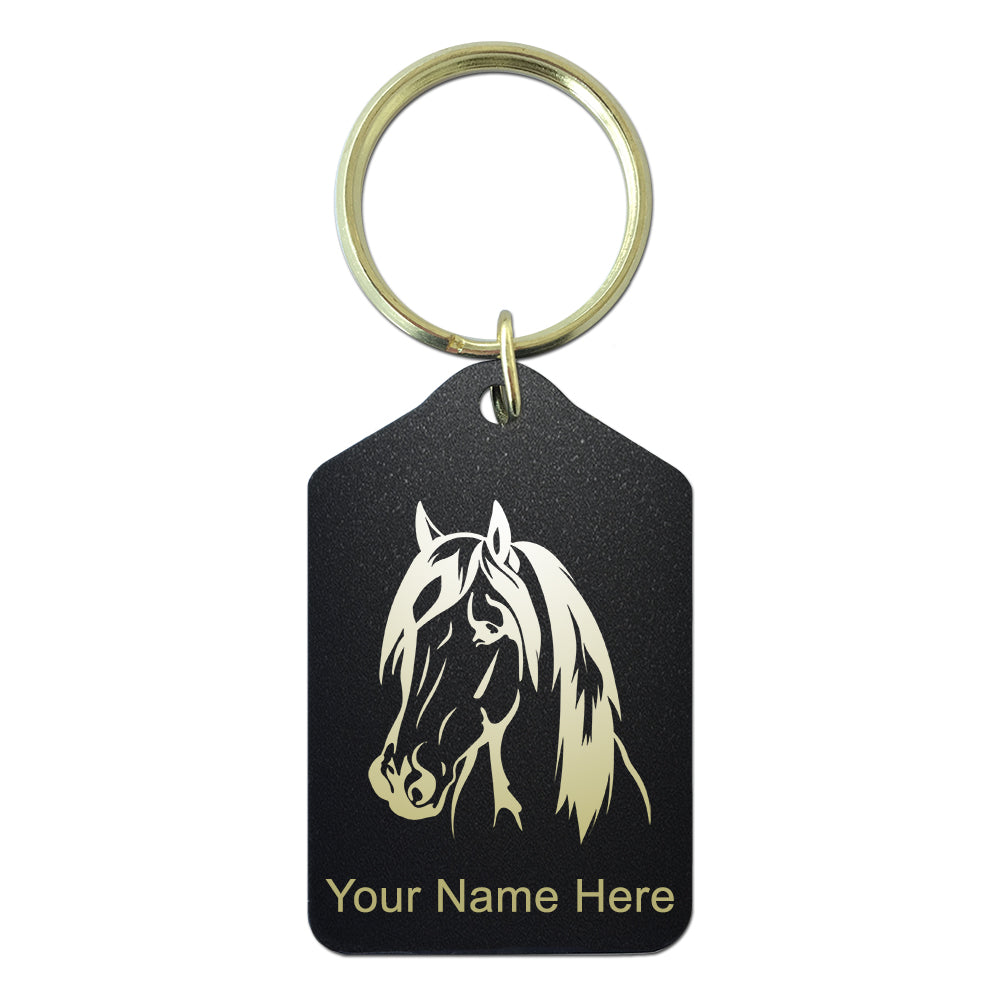 Black Metal Keychain, Horse Head 1, Personalized Engraving Included