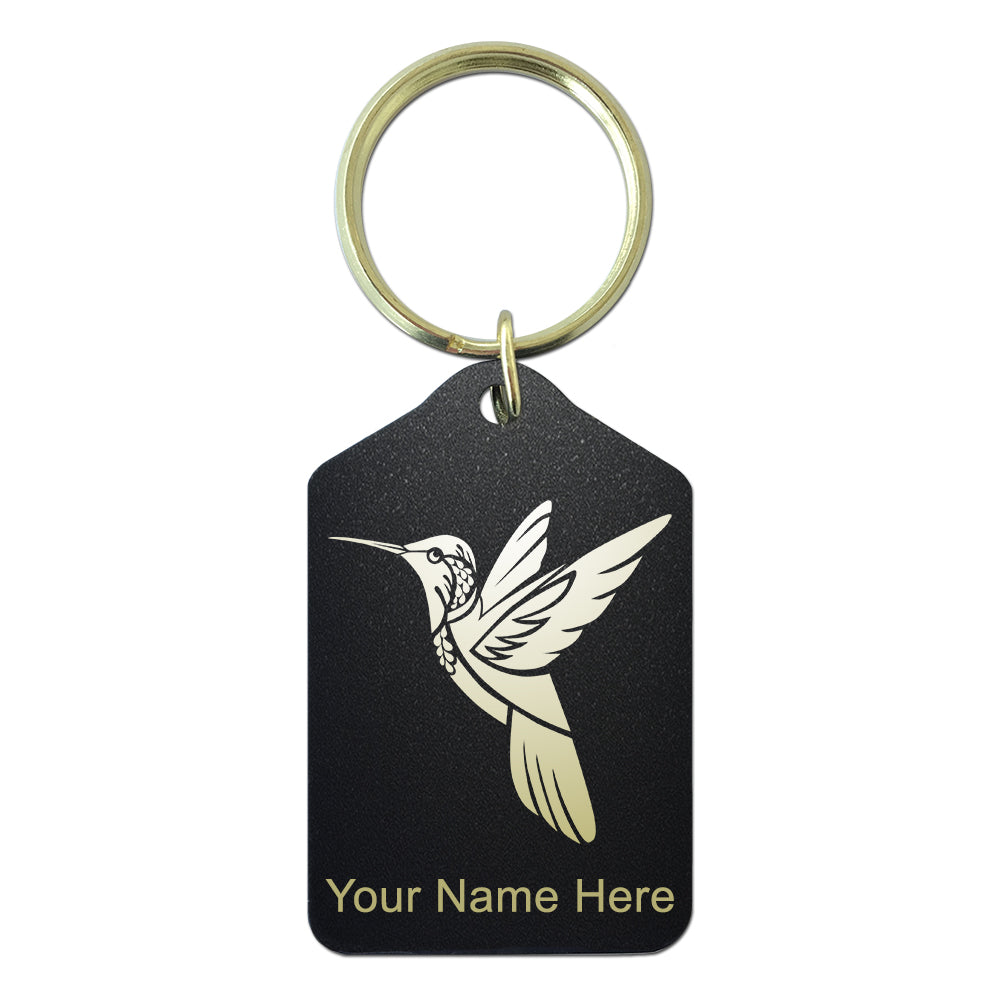 Black Metal Keychain, Hummingbird, Personalized Engraving Included