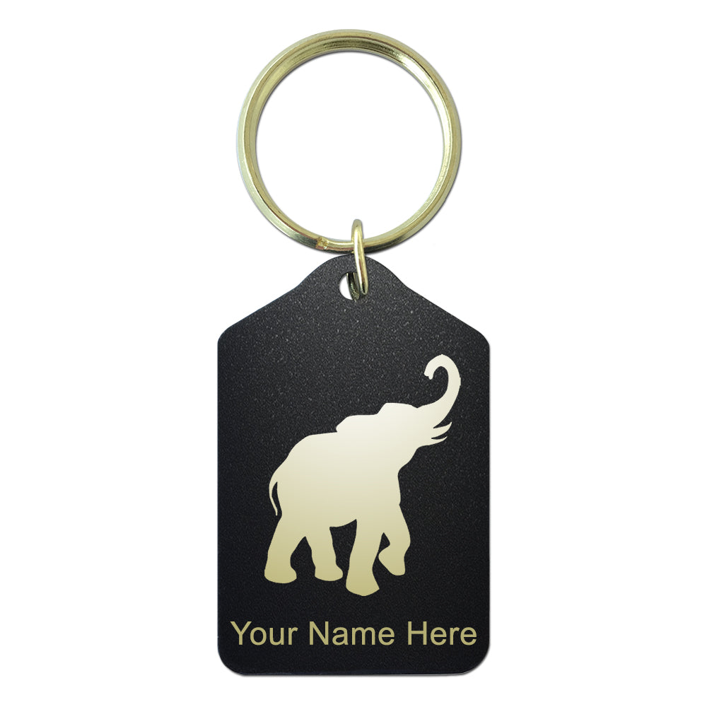 Black Metal Keychain, Indian Elephant, Personalized Engraving Included