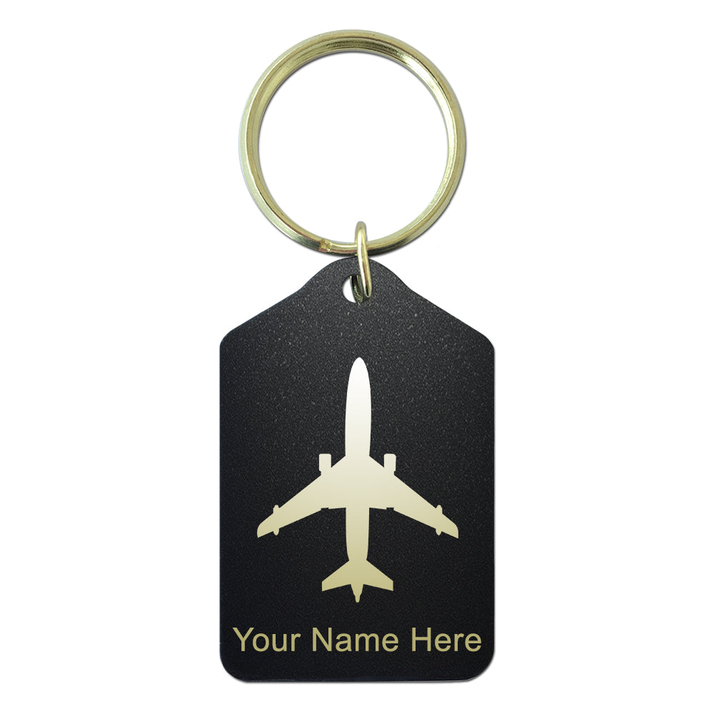 Black Metal Keychain, Jet Airplane, Personalized Engraving Included