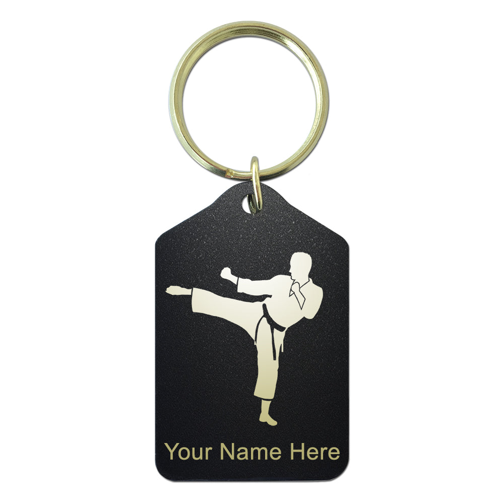 Black Metal Keychain, Karate Man, Personalized Engraving Included