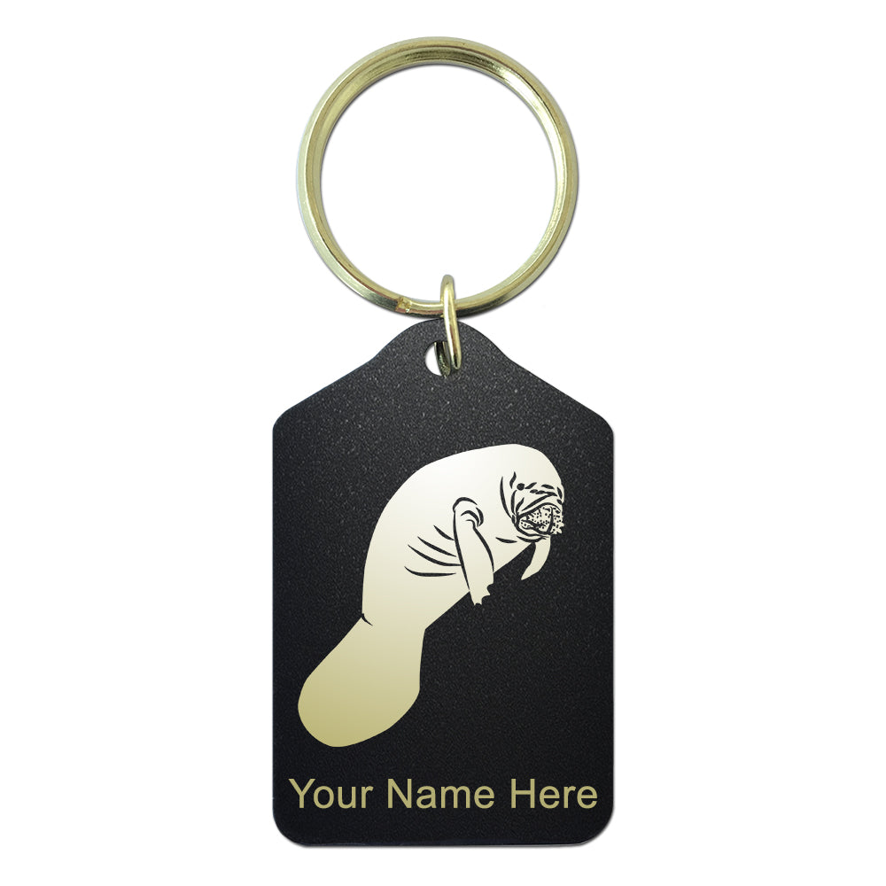 Black Metal Keychain, Manatee, Personalized Engraving Included