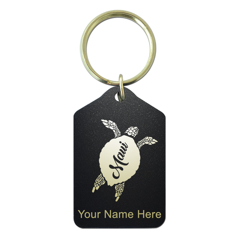 Black Metal Keychain, Maui Sea Turtle, Personalized Engraving Included