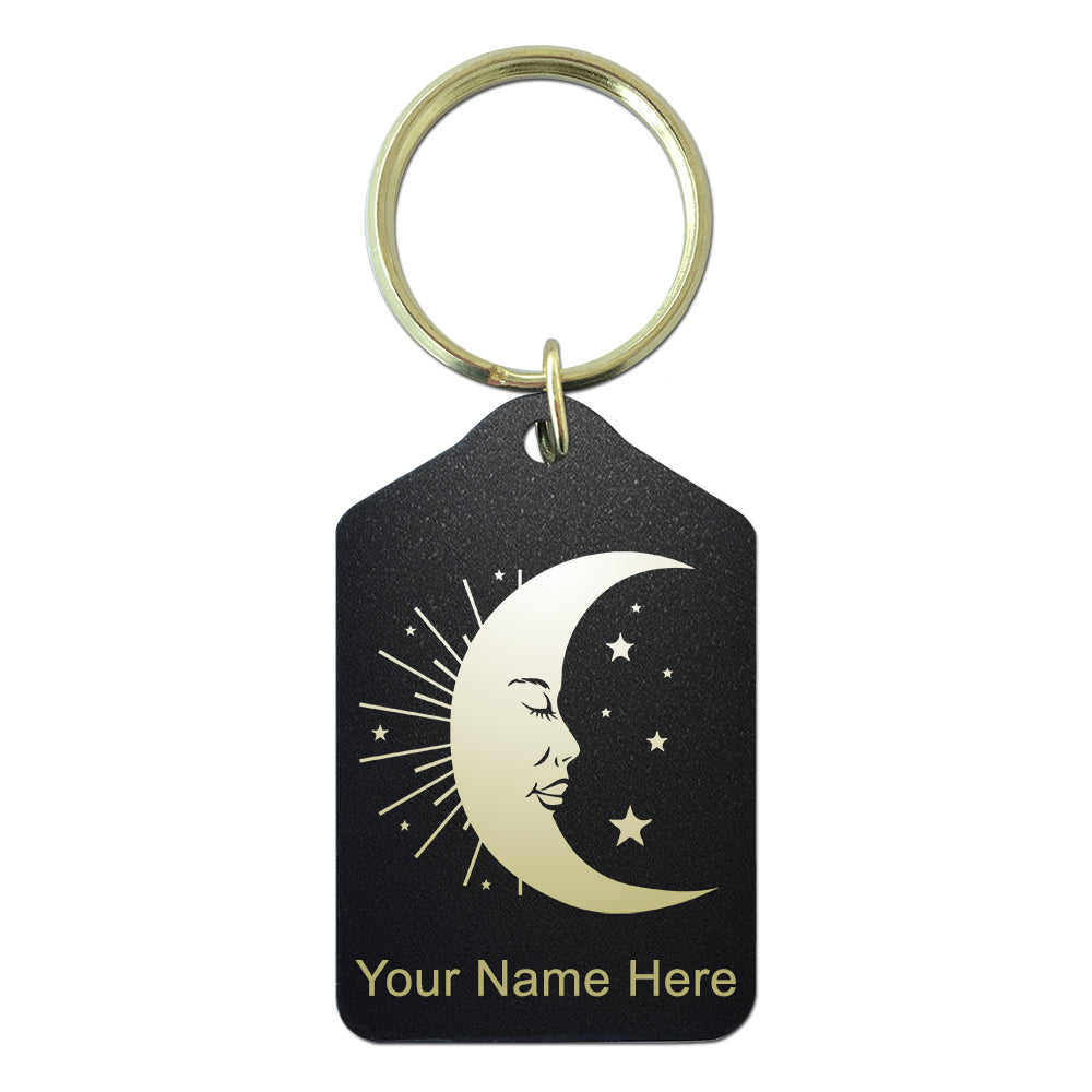 Black Metal Keychain, Moon, Personalized Engraving Included